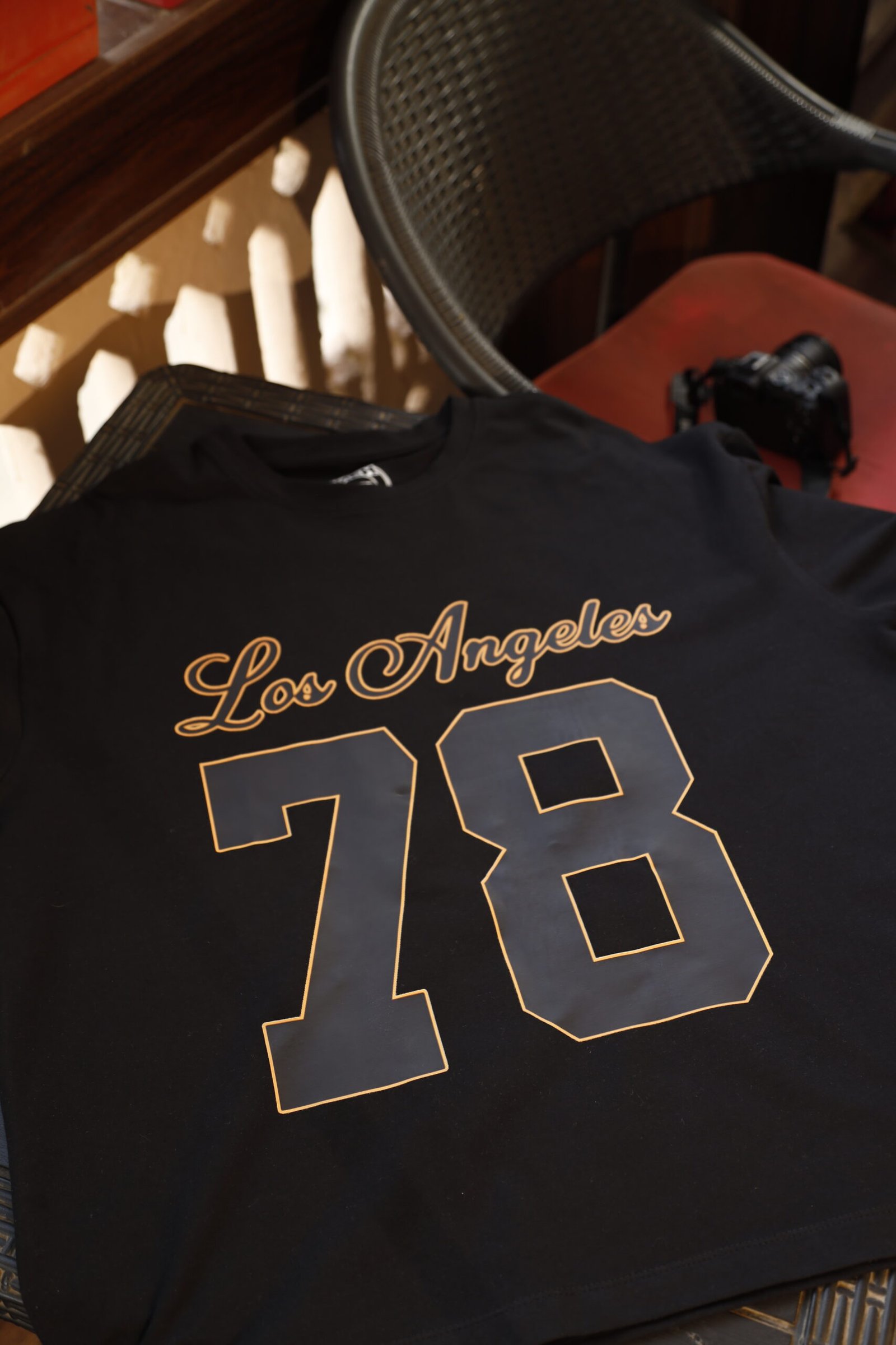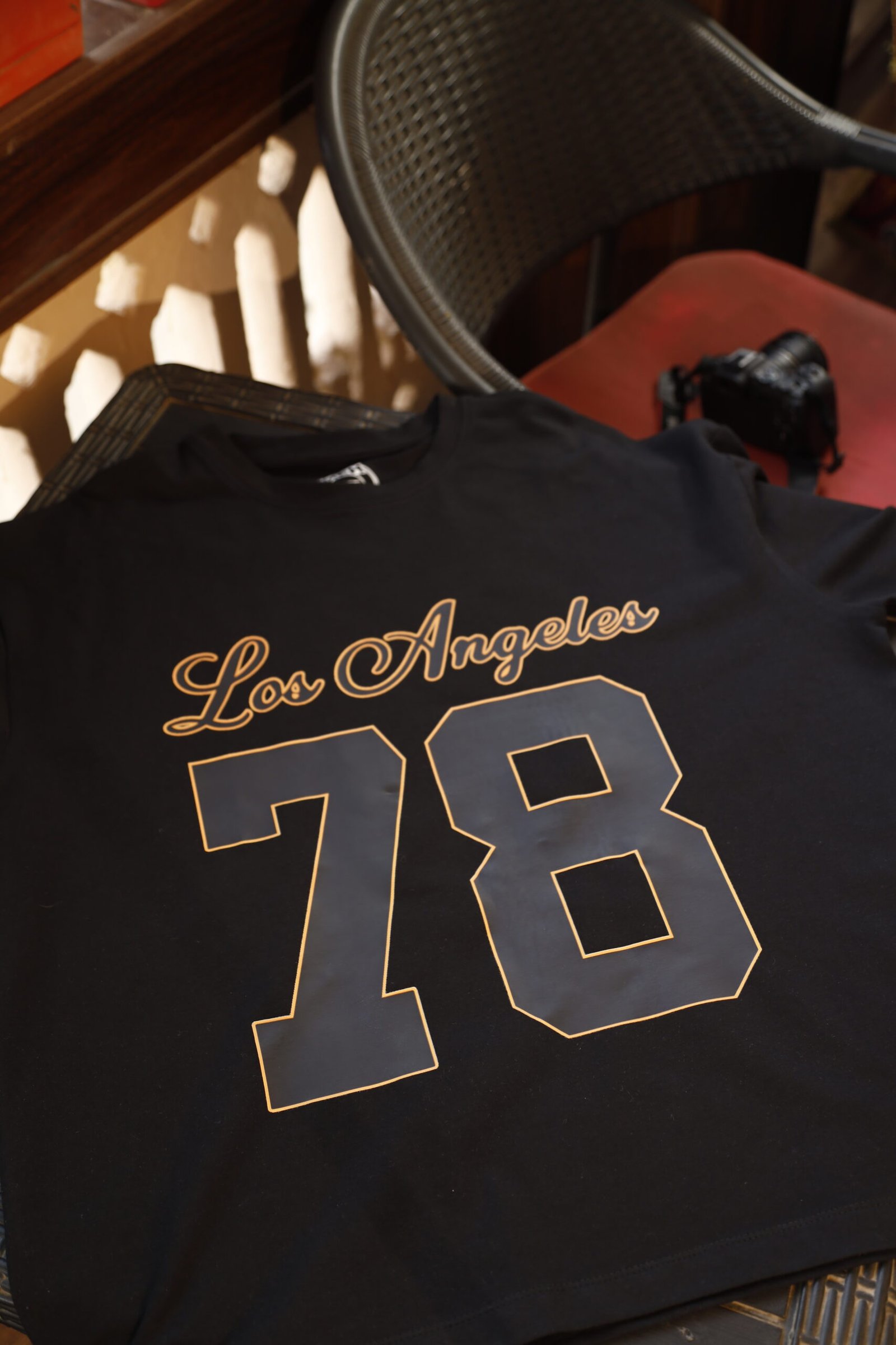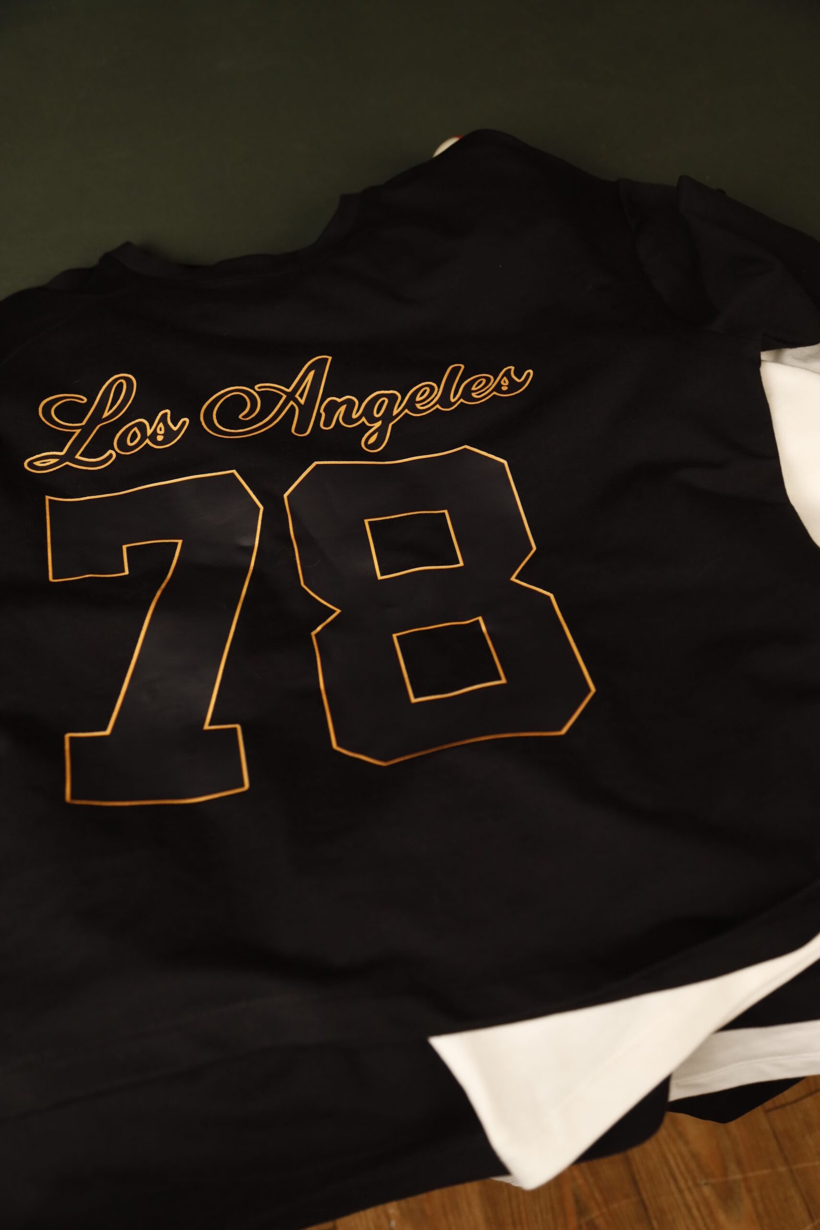 An iconic tribute to Los Angeles street culture, blending vintage varsity aesthetics with modern midnight luxury